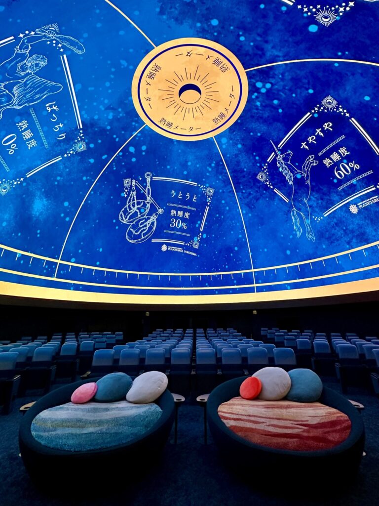 「熟睡プラ寝たリウム」とは、11月23日の『勤労感謝の日』に開催した、全国各地のプラネタリウムで日々仕事や学業に勤しむ方を中心とした、星を眺めながらお休みいただくイベントで、コニカミノルタプラネタリアYOKOHAMAでも大好評を博しました。