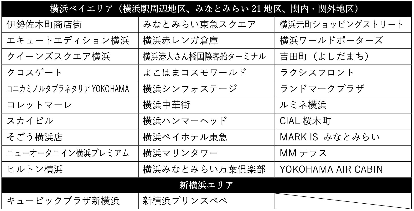 横浜ベイエリア・新横浜エリアの32施設・エリア、約450店舗で実施