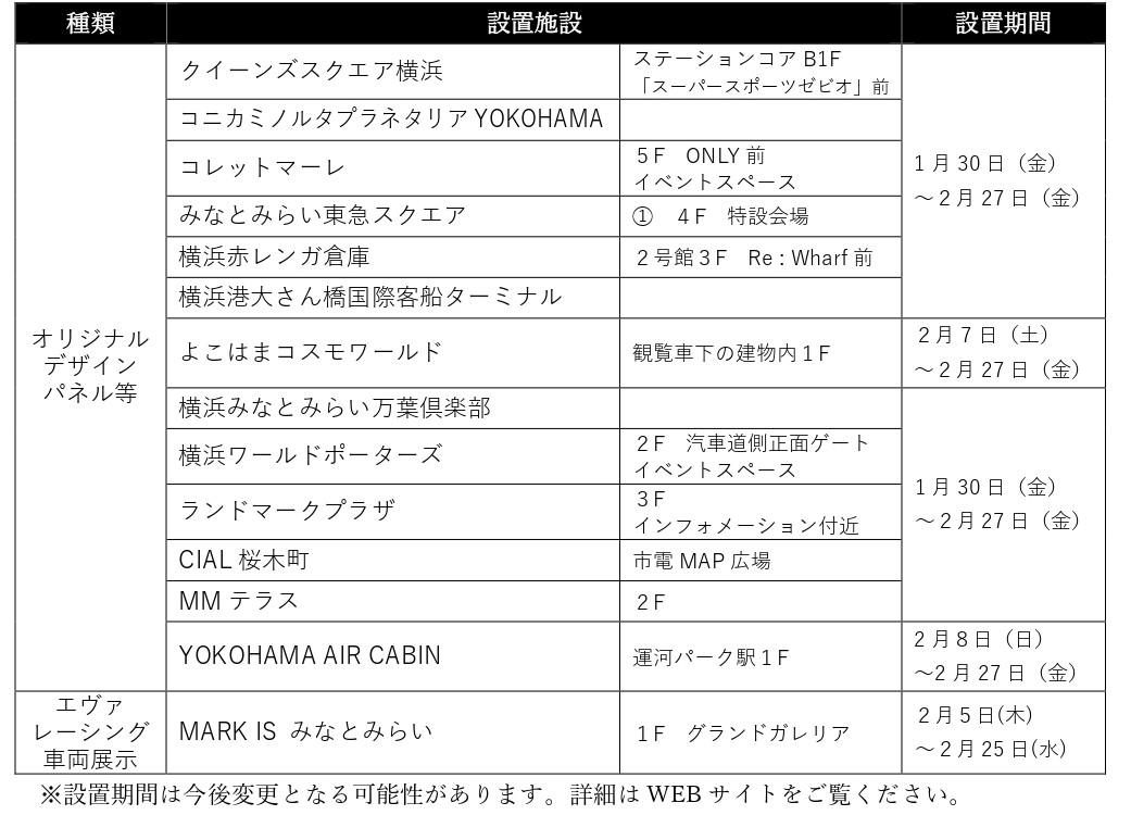 エヴァレーシング車両展示など、全14か所で展開されます。