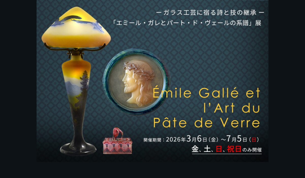 みらい美術館では、2026年3月6日(金)〜7月5日(日)の期間、「エミール・ガレとパート・ド・ヴェールの系譜」展を開催します。