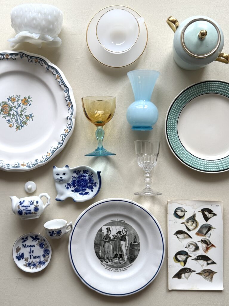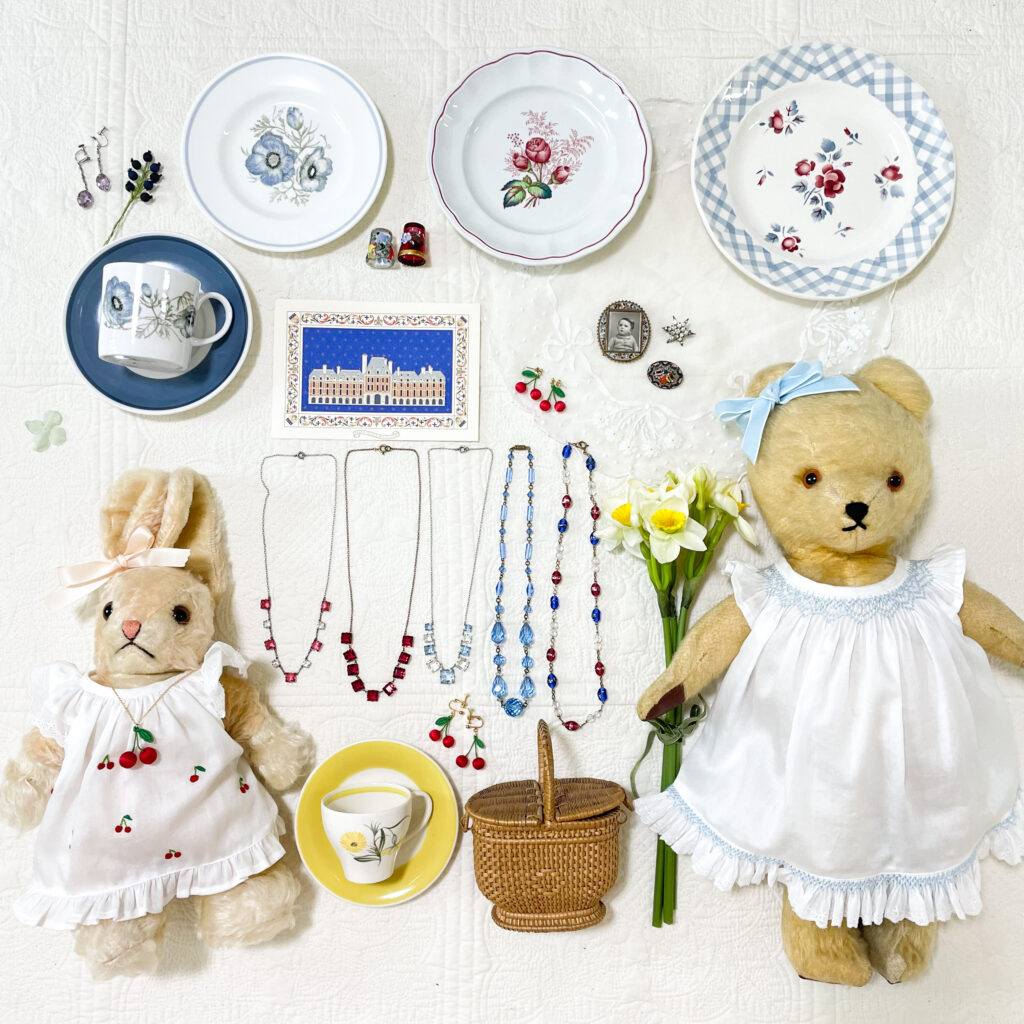 お花、アンティーク、本、陶器など。暮らしを彩るアイテムが並びます。