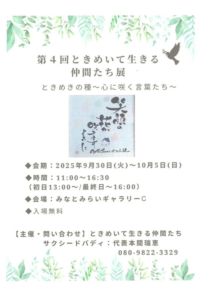【展示内容】テーマ:ときめきの種~心に咲く言葉たち~ハガキ作品、掛け軸作品など80点