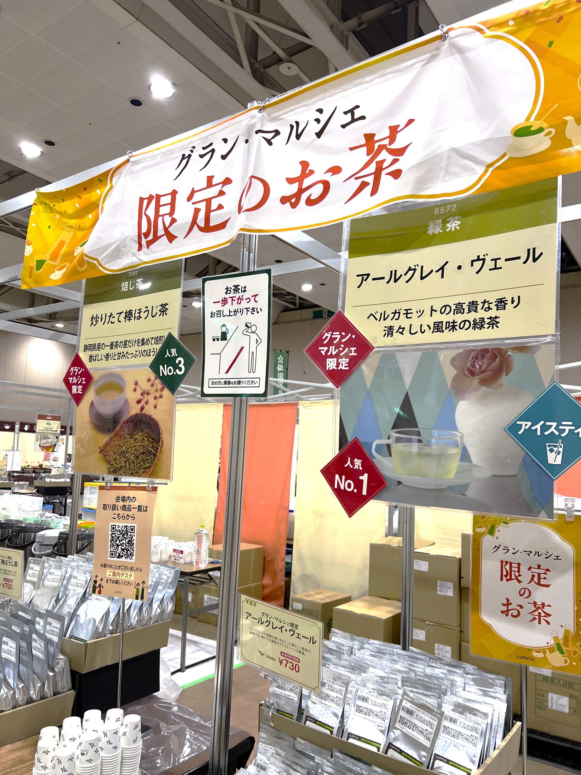 「グラン・マルシェ」では、世界各地の紅茶や緑茶、烏龍茶から、多彩な風味のフレーバードティー、ハーブティー、イベント限定のお茶など、65種類以上のお茶が自由に飲める無料試飲ブースをご用意。