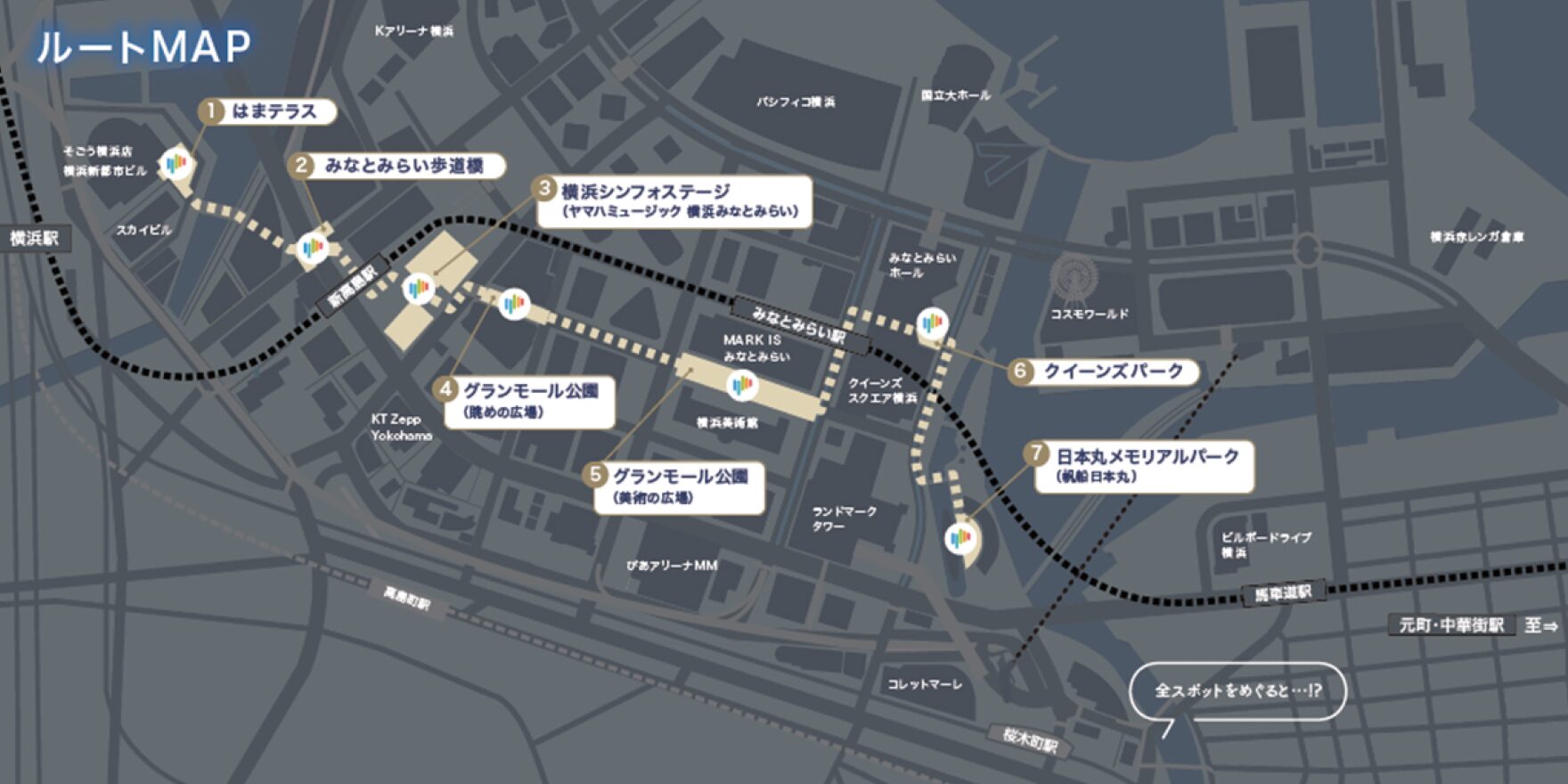 「ヨコハマミライト」のエリア中に各⾳声スポットを設置。
