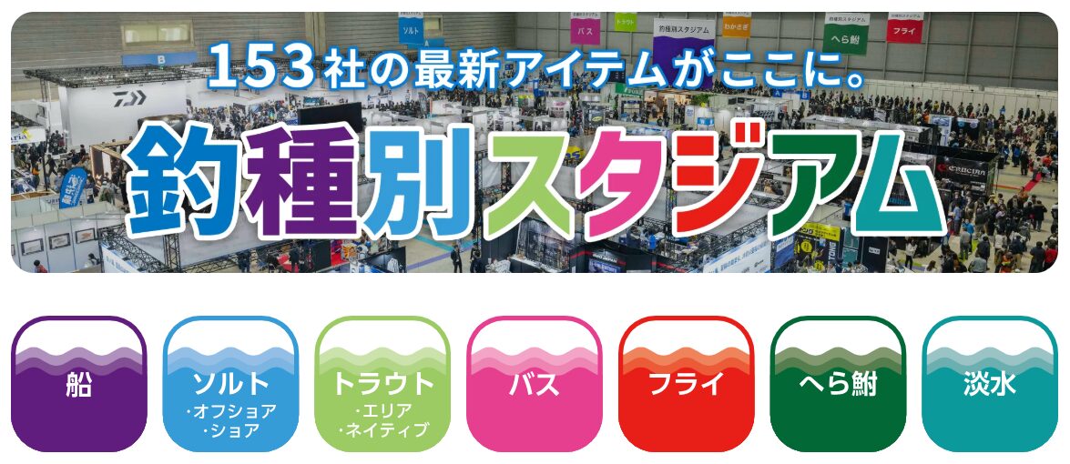 会場内では、7釣種・153社が集まる「釣種別スタジアム」をはじめ、