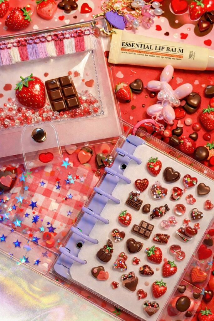 いちご&チョコモチーフの雑貨が並ぶショップ。