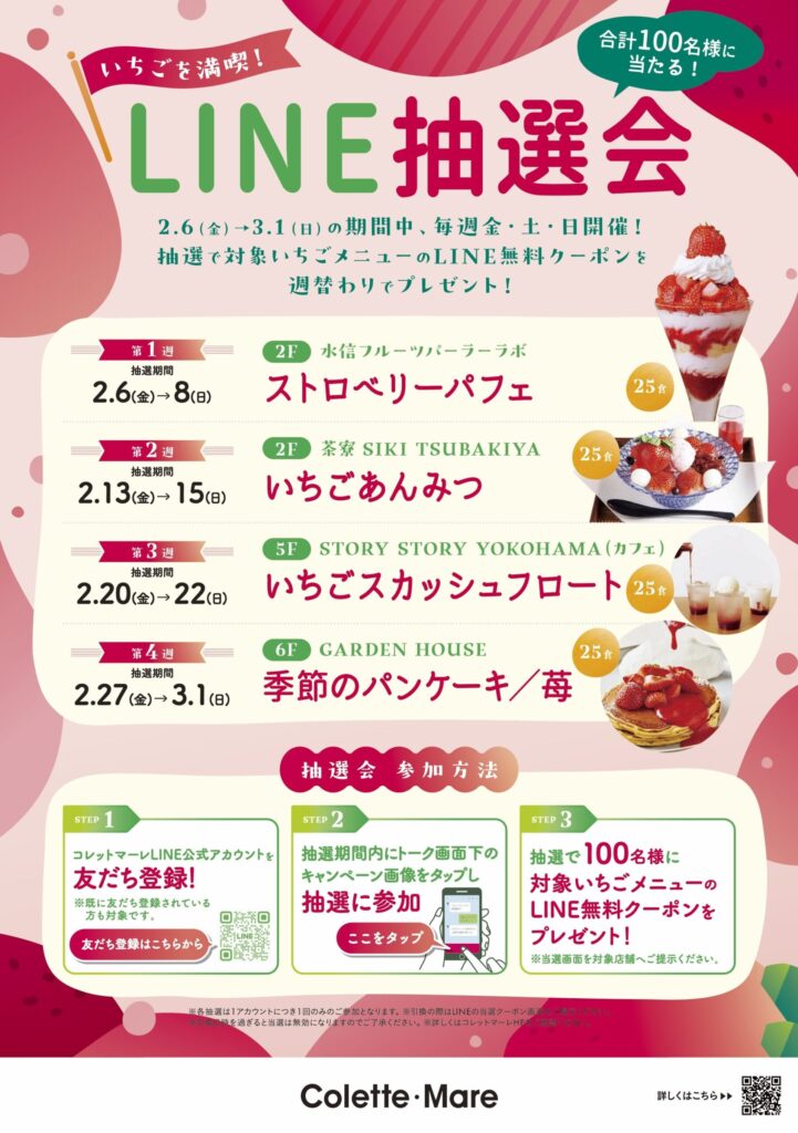 LINE抽選会の詳細はコレットマーレのHPをご確認ください。