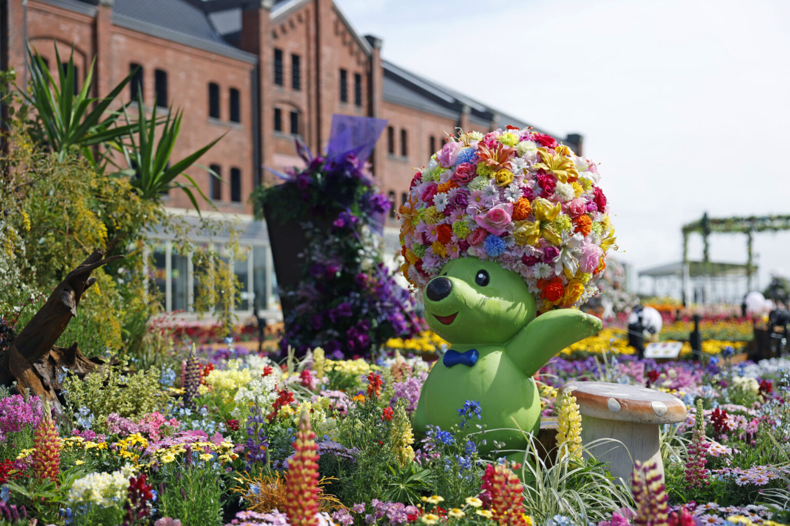 横浜市内の各所で花を楽しめるイベント。FLOWER GARDEN会場にはマスコット「ガーデンベア」のオブジェが登場します。