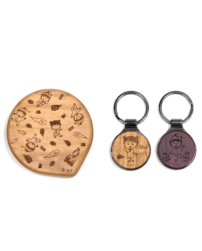 シンプルで上質な木製キーリングと、手のひらサイズで携帯に便利なスライド式の木製コンパクトミラー