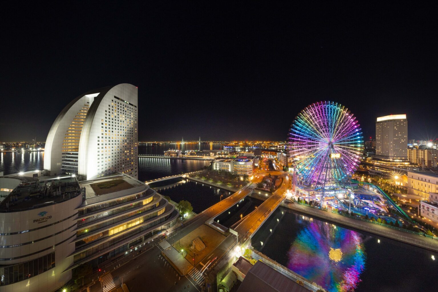 みなとみらいの夜景を望む客室で、