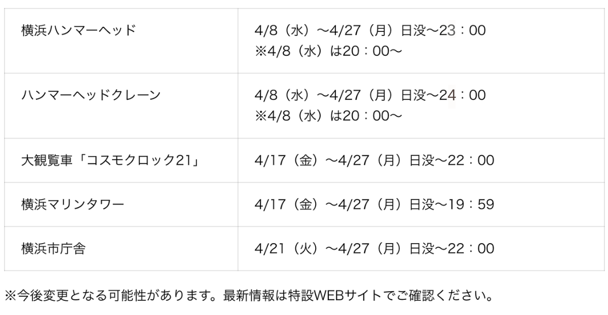 - ※よこはまコスモワールド・YOKOHAMA AIR CABINは4月17日(金)から放送