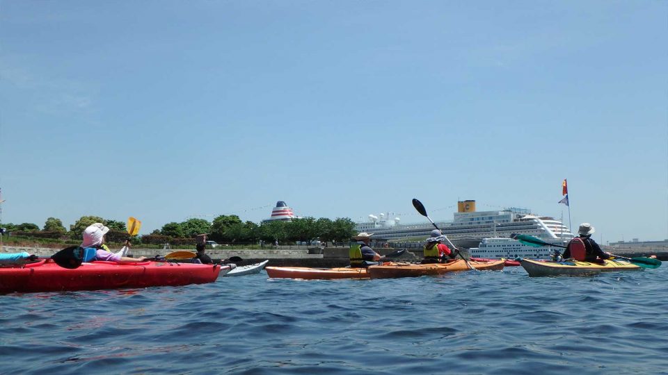 海から楽しむみなとみらい 日本丸シーカヤック教室