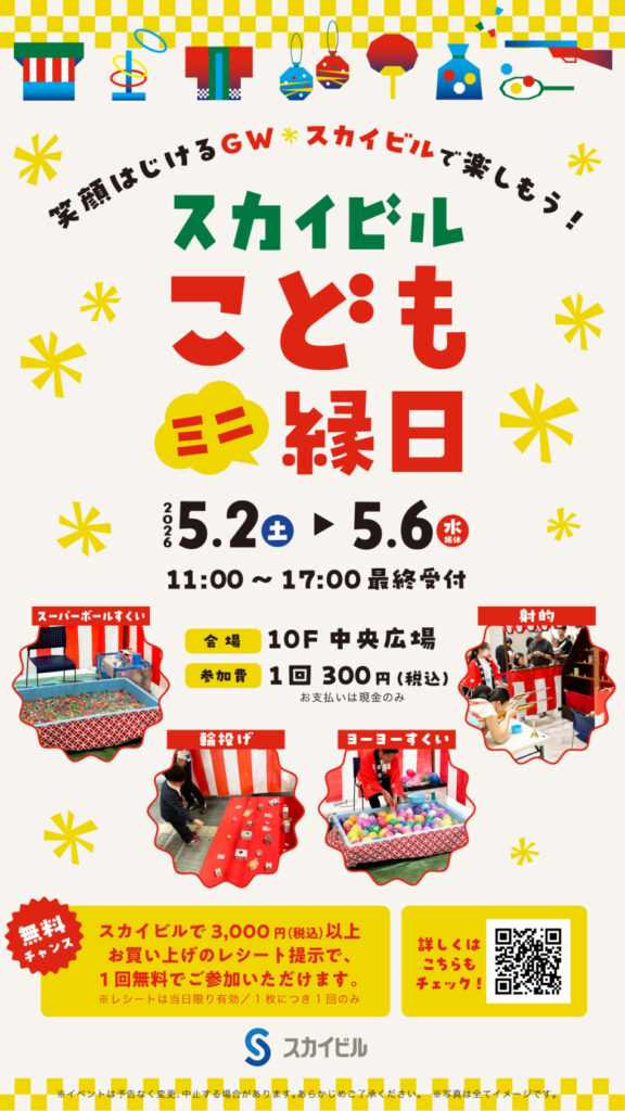 「スカイビル こどもミニ縁日」を開催します。