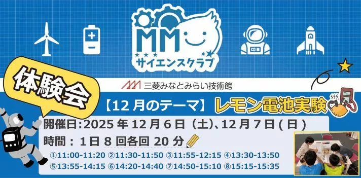 12/6(土)•7(日) MMサイエンスクラブ体験会~レモン電池実験~