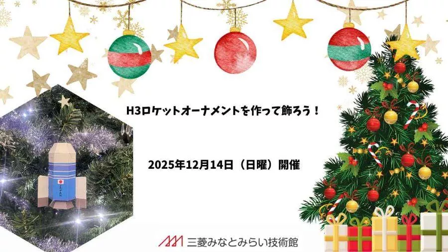H3ロケットのオーナメントをペーパークラフトで作って、三菱みなとみらい技術館のエントランスのツリーに飾りましょう!