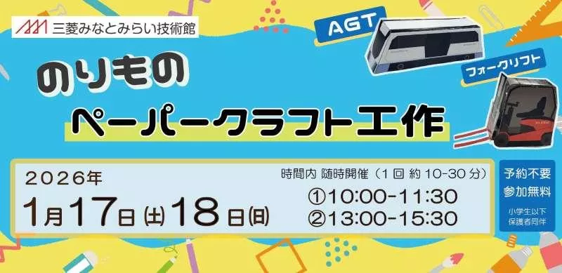 みんなが大好きなのりもの「新交通システムAGT」や「フォークリフト」のペーパークラフトをつくります。