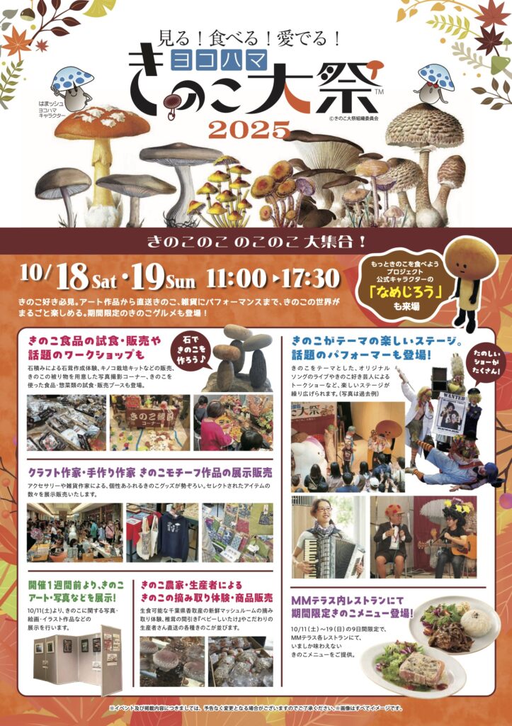 MMテラスは、毎年人気のイベント『ヨコハマきのこ大祭2025』を10/18(土)・19(日)の2日間で開催します。