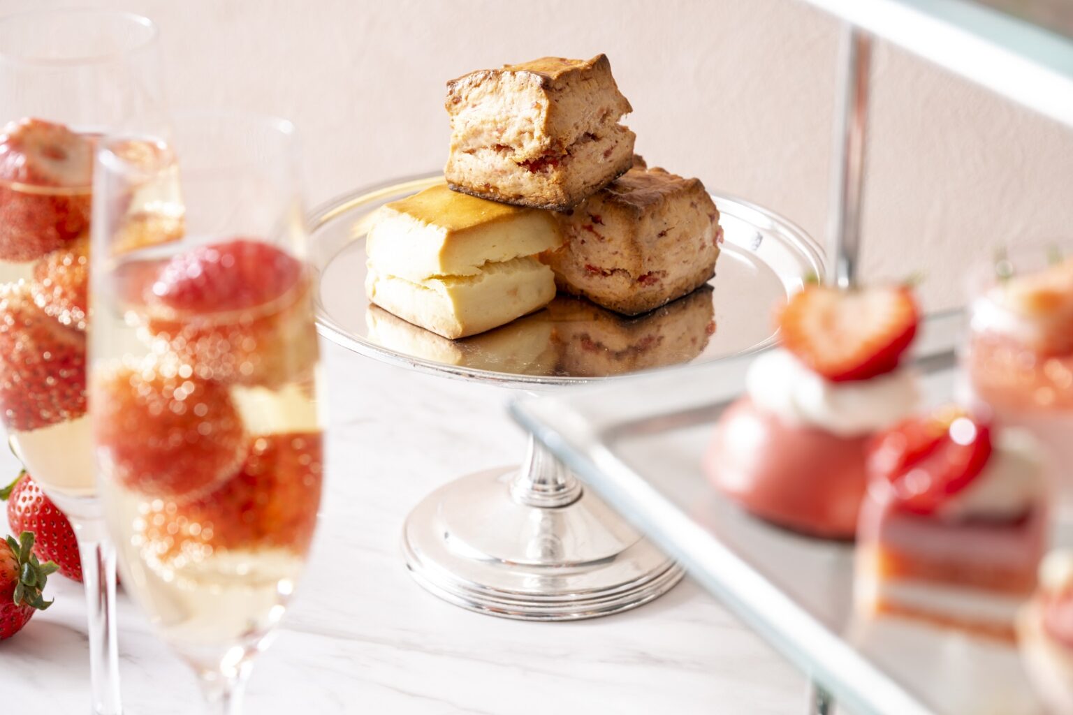 いちごとの組み合わせで、まるで花束のように可憐なアフタヌーンティーになっています。