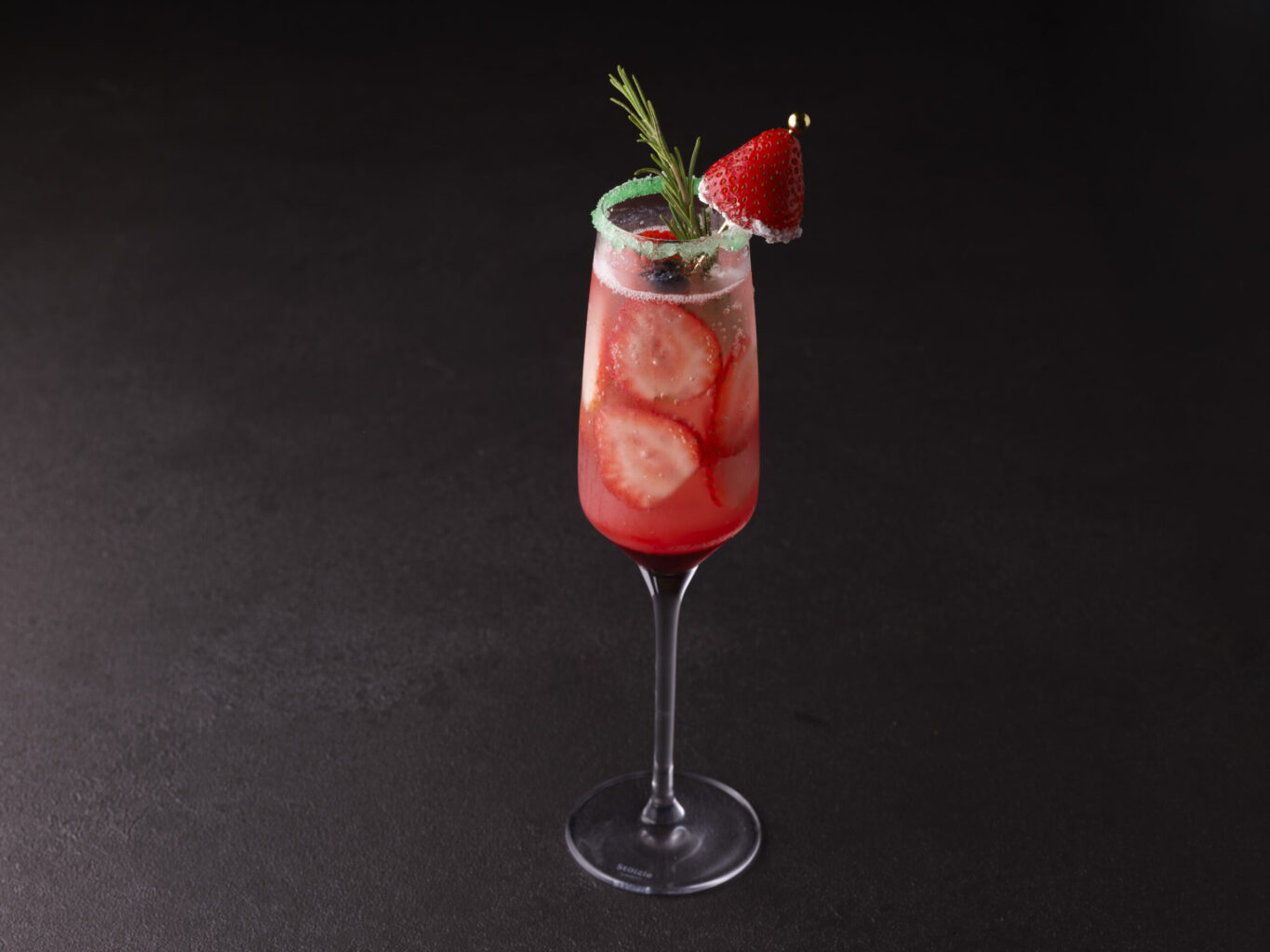 ローズマリーと苺の“サンタ帽”が、グラスの中にクリスマスのムードを灯します🍓🥂