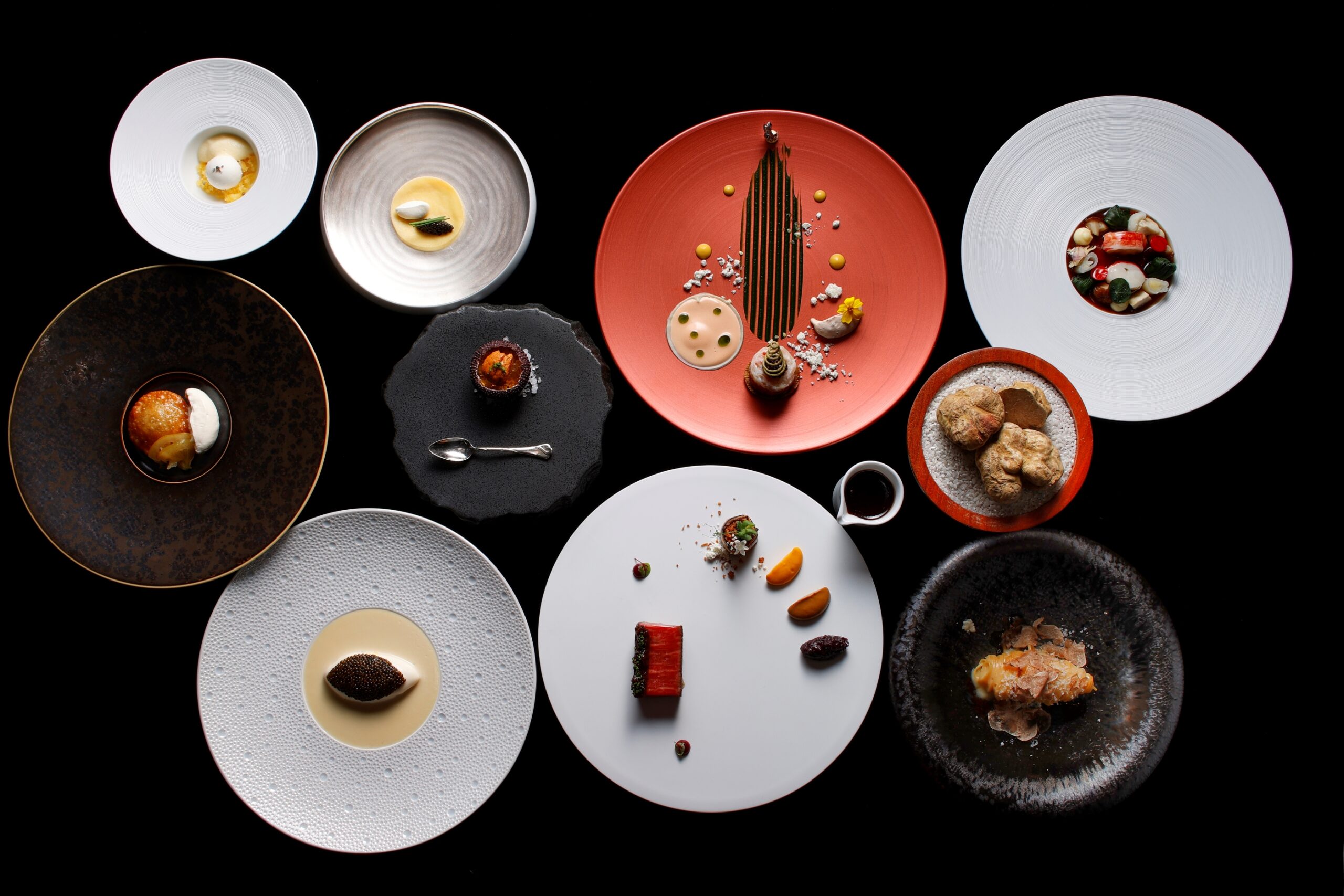 フランス料理の技法とイタリア料理のエスプリを重ねた、美学あふれる一皿が並びます。
