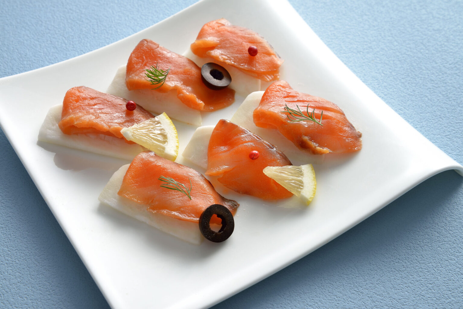 蕪とスモークトラウトサーモンのマリネ、鱈と白菜の味噌クリーム煮、
