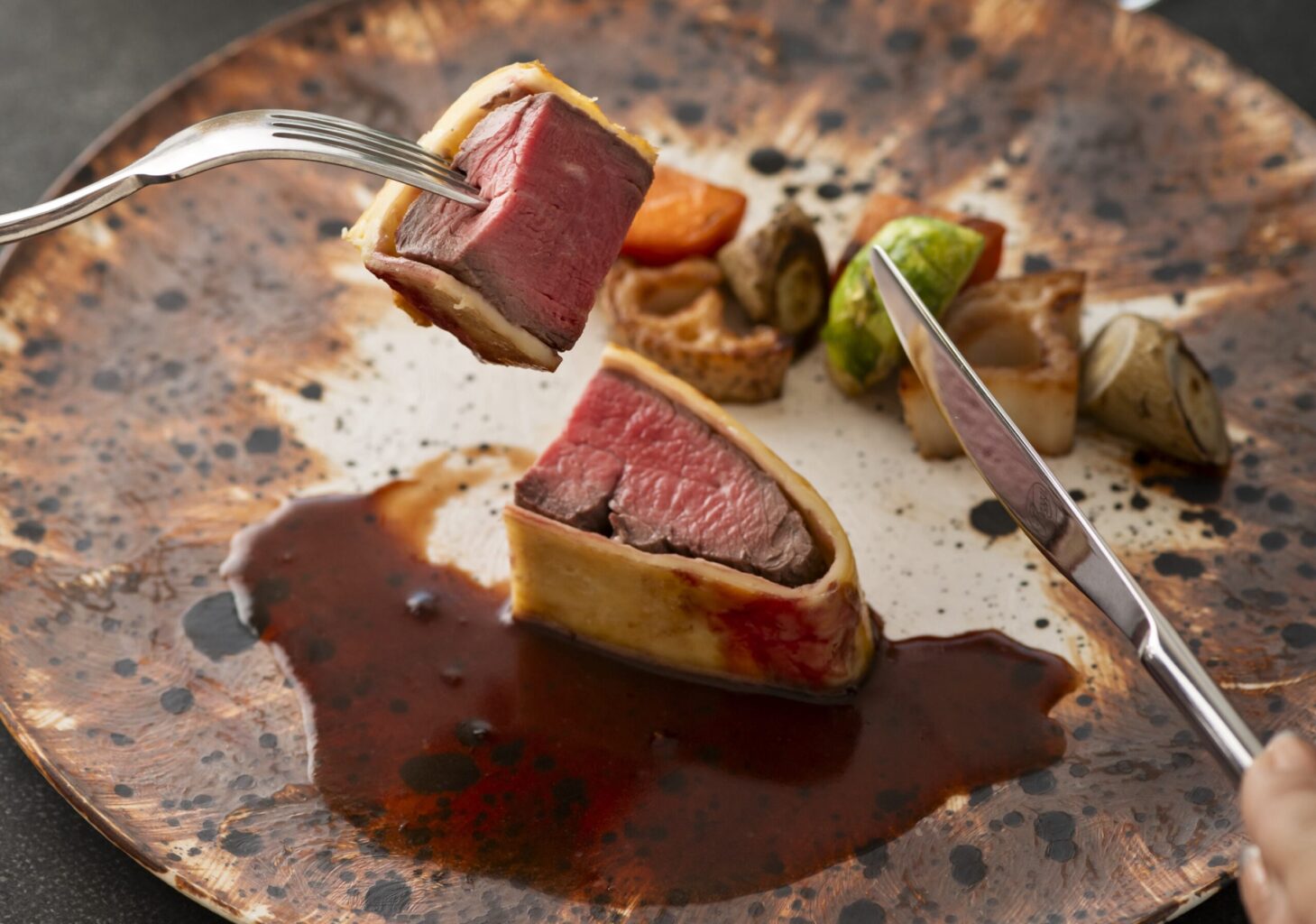 <セコンド>牛フィレ肉のパイ包み焼き フォアグラのキャラメリゼと根菜添え ポルトソース