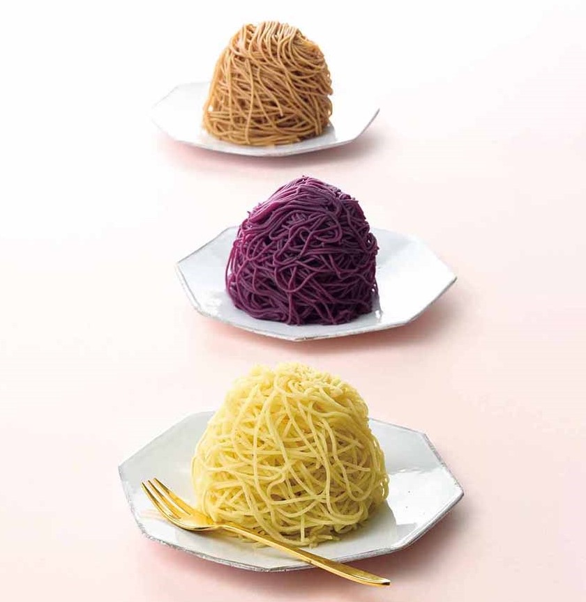 生絞りモンブラン(①紅あずま②絞紫、1個)各680円(③栗、1個)900円