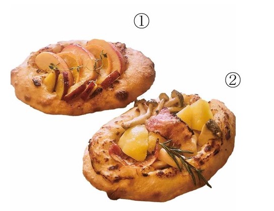 ②十勝産インカのめざめとベーコン・キノコのフォカッチャ(1個)各781円 実演