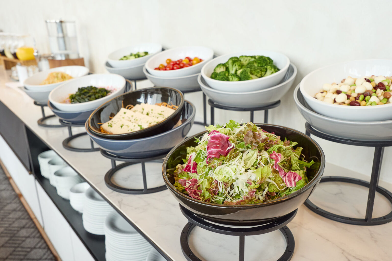メイン料理と点心に加え、サラダ・スープ・パン・ライス・ドリンク・デザートはブッフェスタイルで提供。