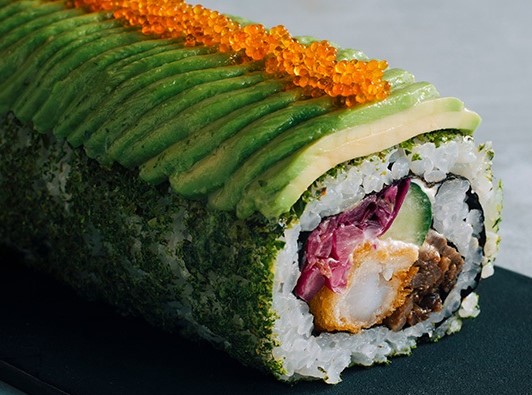 本まぐろと伊勢真鯛が入った赤酢のシャリを使用した海鮮の恵方巻
