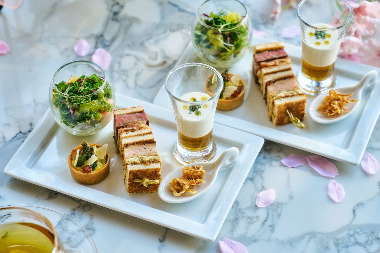 春を連想させる華やかなスイーツと、旬の食材を使ったセイボリーが並びます。