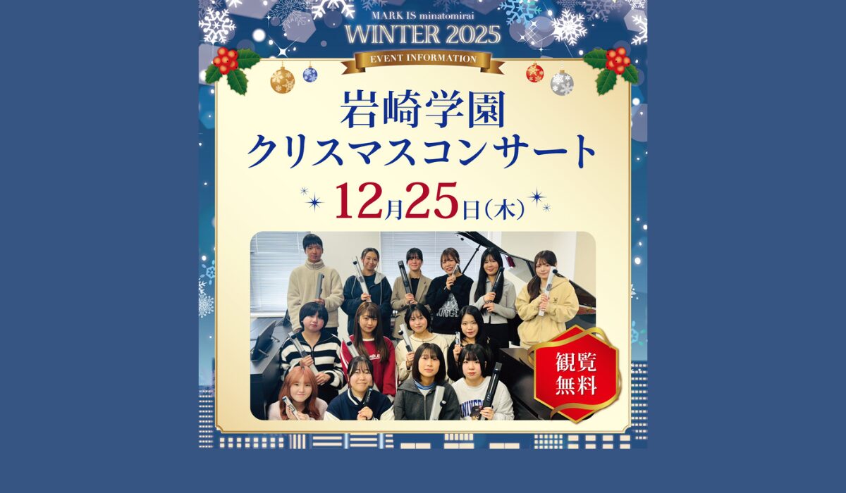 MARK IS みなとみらい では、12月25日(木)、「岩崎学園 横浜保育福祉専門学校」の音楽ゼミナール学生によるトーンチャイム&ハンドベル演奏を実施します。