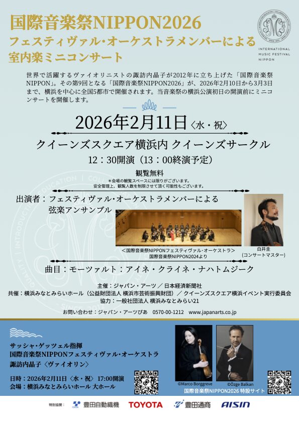 「国際音楽祭NIPPON2026」2/11(祝•水) はみなとみらいで公演