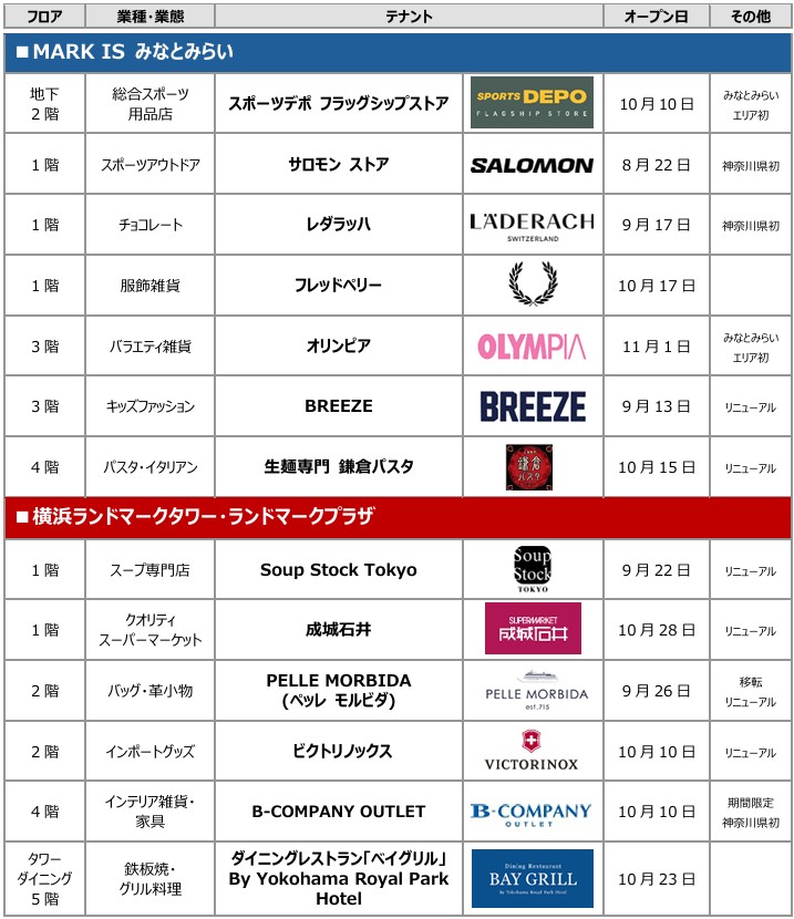 【MARK IS みなとみらい】【横浜ランドマークタワー・ランドマークプラザ】2025年・秋 2施設で新店舗7店舗、リニューアル6店舗オープン