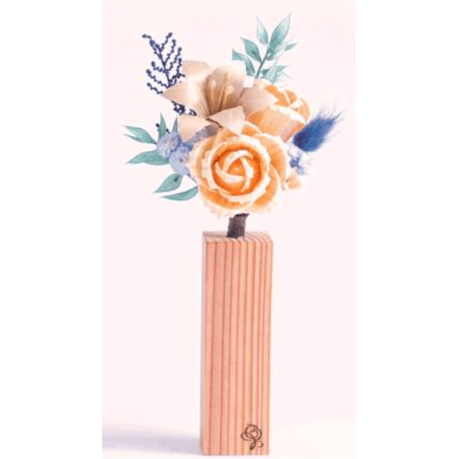 MOKUKAシングルアレンジ(バラ:ヒノキ、ユリ:ホオノキ、花器:スギ、約縦20.0×横8.0cm)11,000円