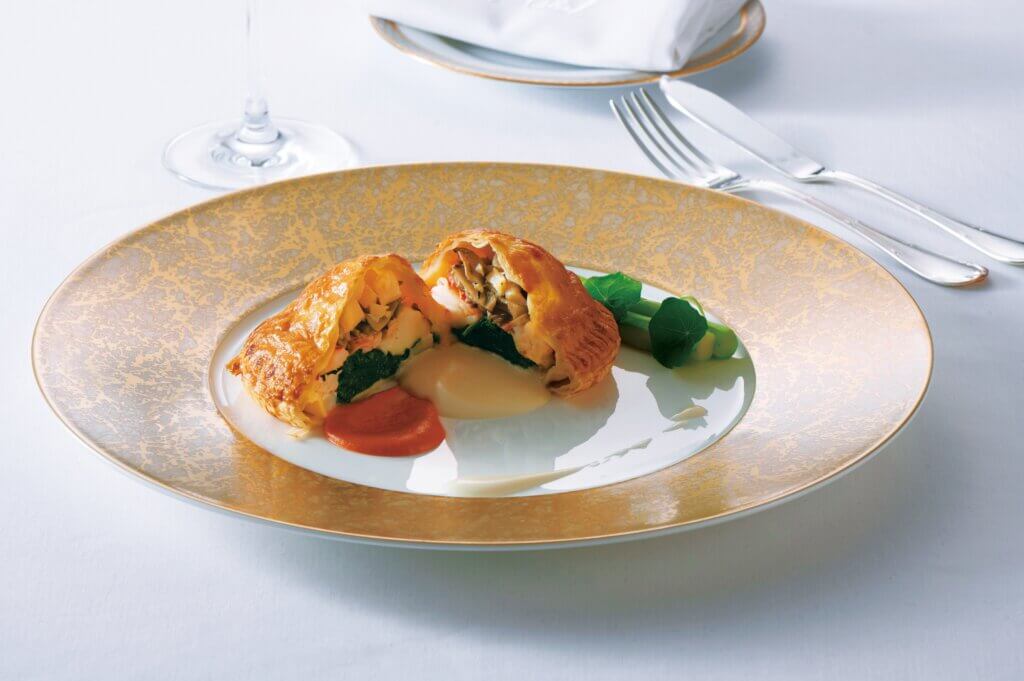 王道のメイン料理“牛フィレ肉のポワレ”はマデラソースでご用意。魚料理には、ぷりぷりとした身のオマール海老と野菜とのハーモニーが絶妙なパイ包み焼きを、色鮮やかな2種類のソースでお召しあがりいただけます。