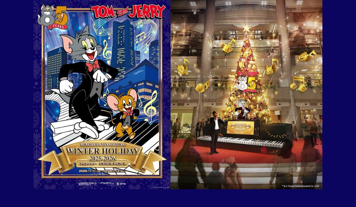 横浜ランドマークタワー、MARK IS みなとみらい、スカイビルでは、2025年11月11日(火)~2026年1月12日(月・祝)の期間中、今年85周年を迎えた「トムとジェリー」とともに、クリスマスからニューイヤーシーズンを盛り上げるホリデーイベント「YOKOHAMA MINATOMIRAI WINTER HOLIDAY 2025₋2026 -トムとジェリー となりには、キミがいる。-」を開催します。