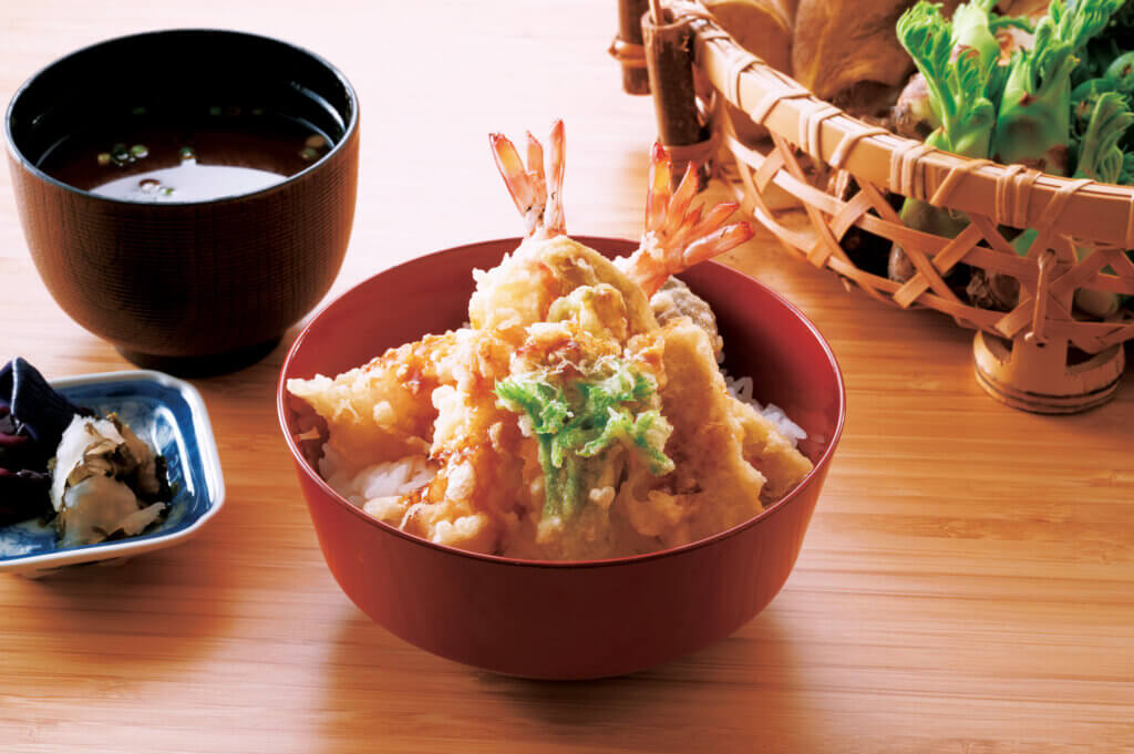 皐月のミニ会席“薫風の味覚 山菜と海老天丼”8,000円