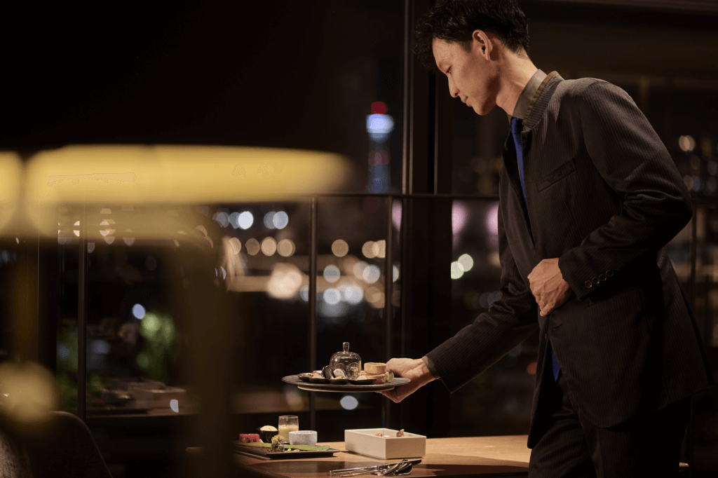 その後は、海と街の二方向の眺望を臨む コーナースイートで、通常クラブラウンジでのみ提供しているアフタヌーンティーを、5 周年を祝して特別にルームサービスで楽しめます。