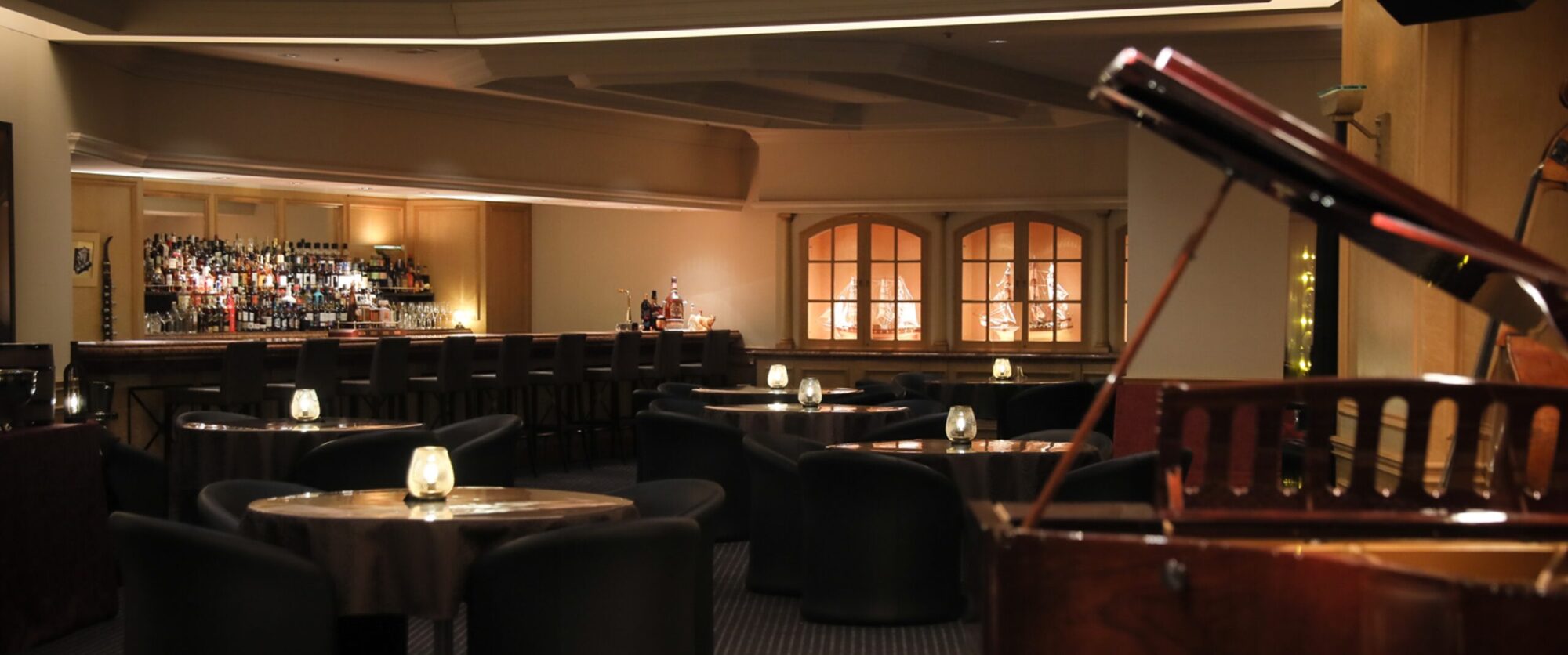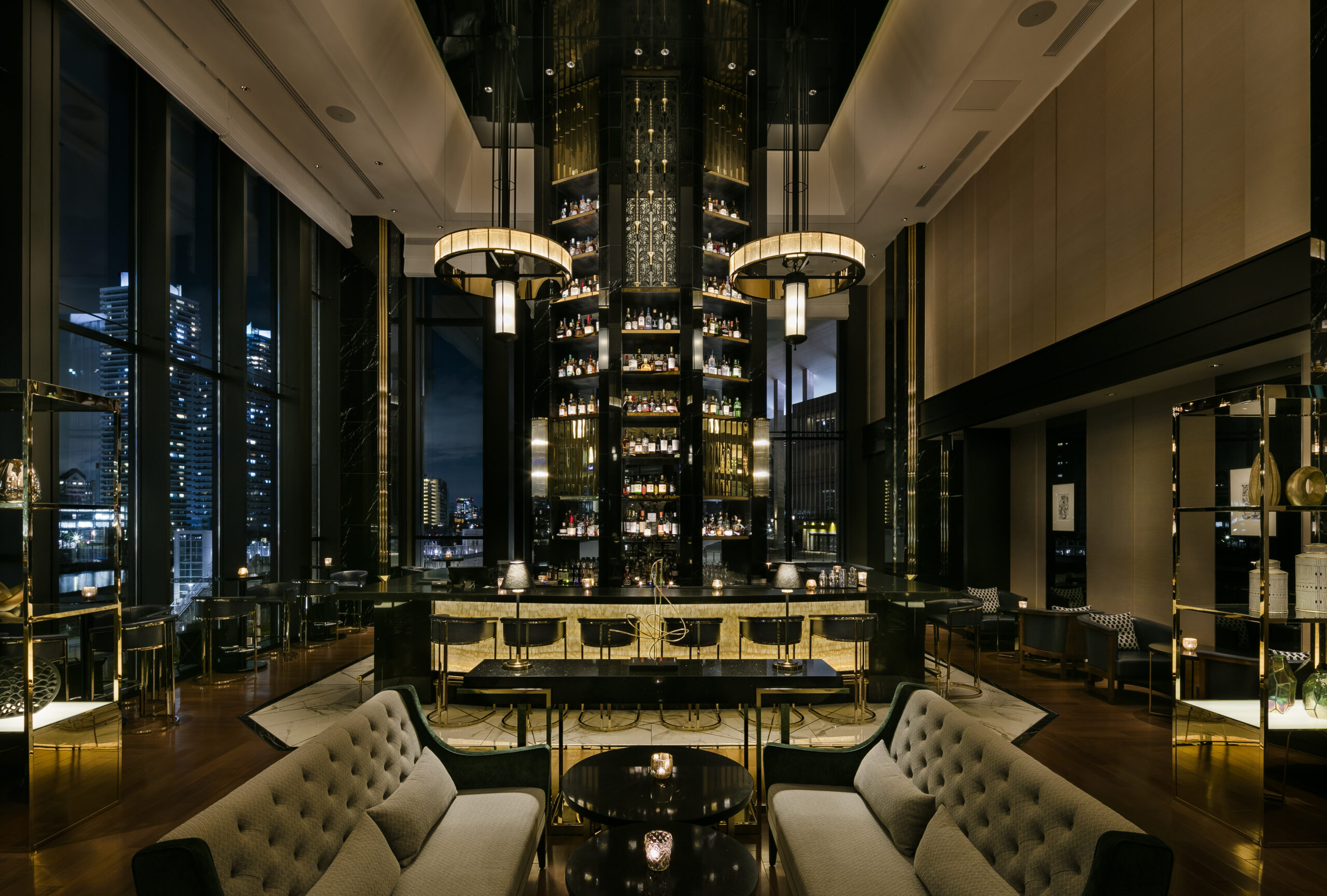 横浜港の夜景を望むホテルのラウンジ&バー。