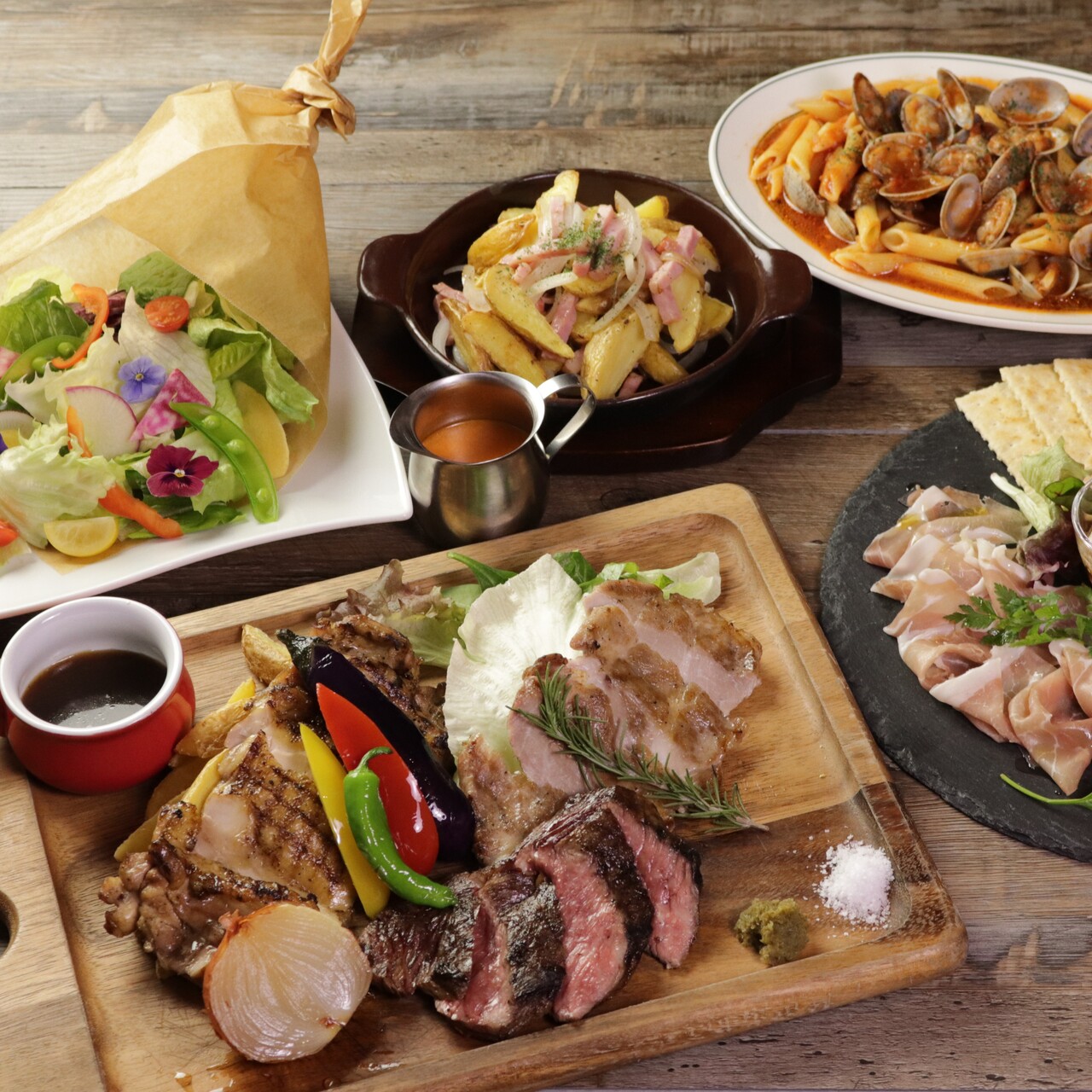 おすすめの『3種のグリルミート盛合せ』や横濱ナポリタンなどお食事のみでもご利用いただけます。