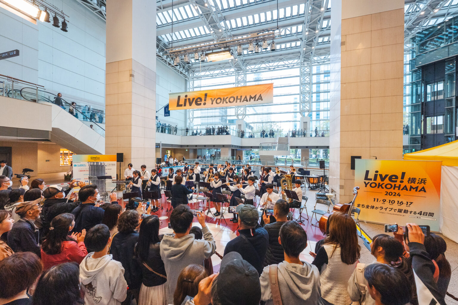 ランドマークプラザ・クイーンズスクエア横浜の会場では、街なかでは貴重な神奈川フィルハーモニー管弦楽団のフルオーケストラによるコンサート(4日)を開催。