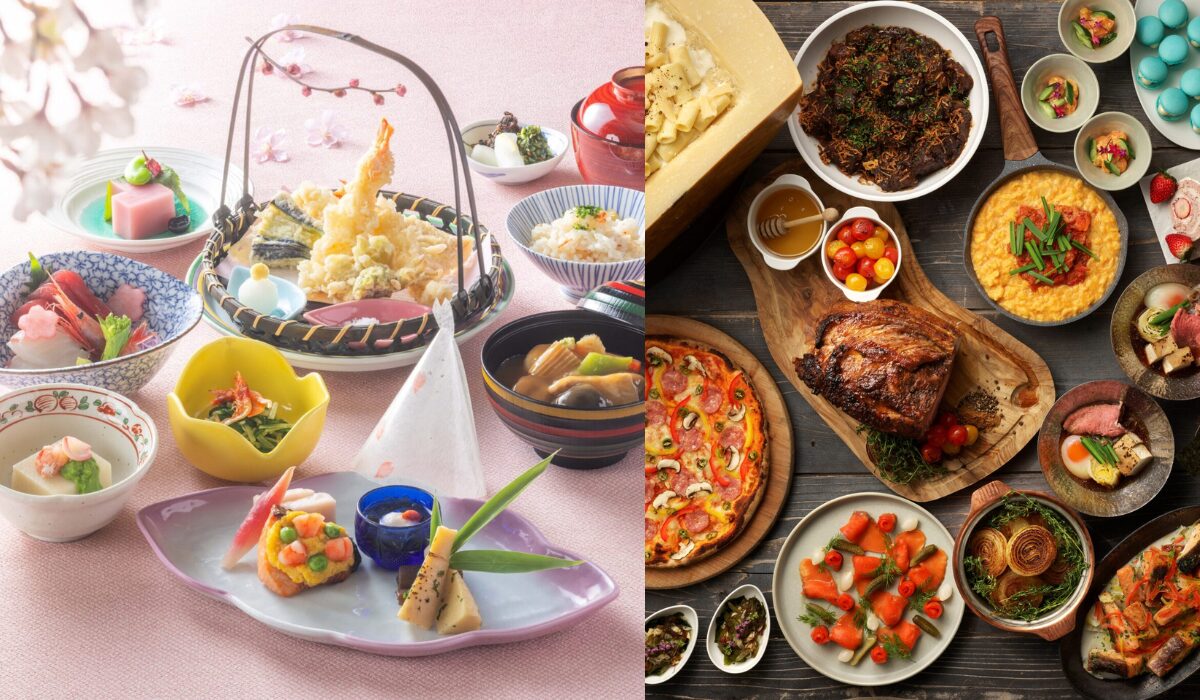 各ホテルでは春の食材を使用したランチブッフェやアフタヌーンティーが楽しめます。